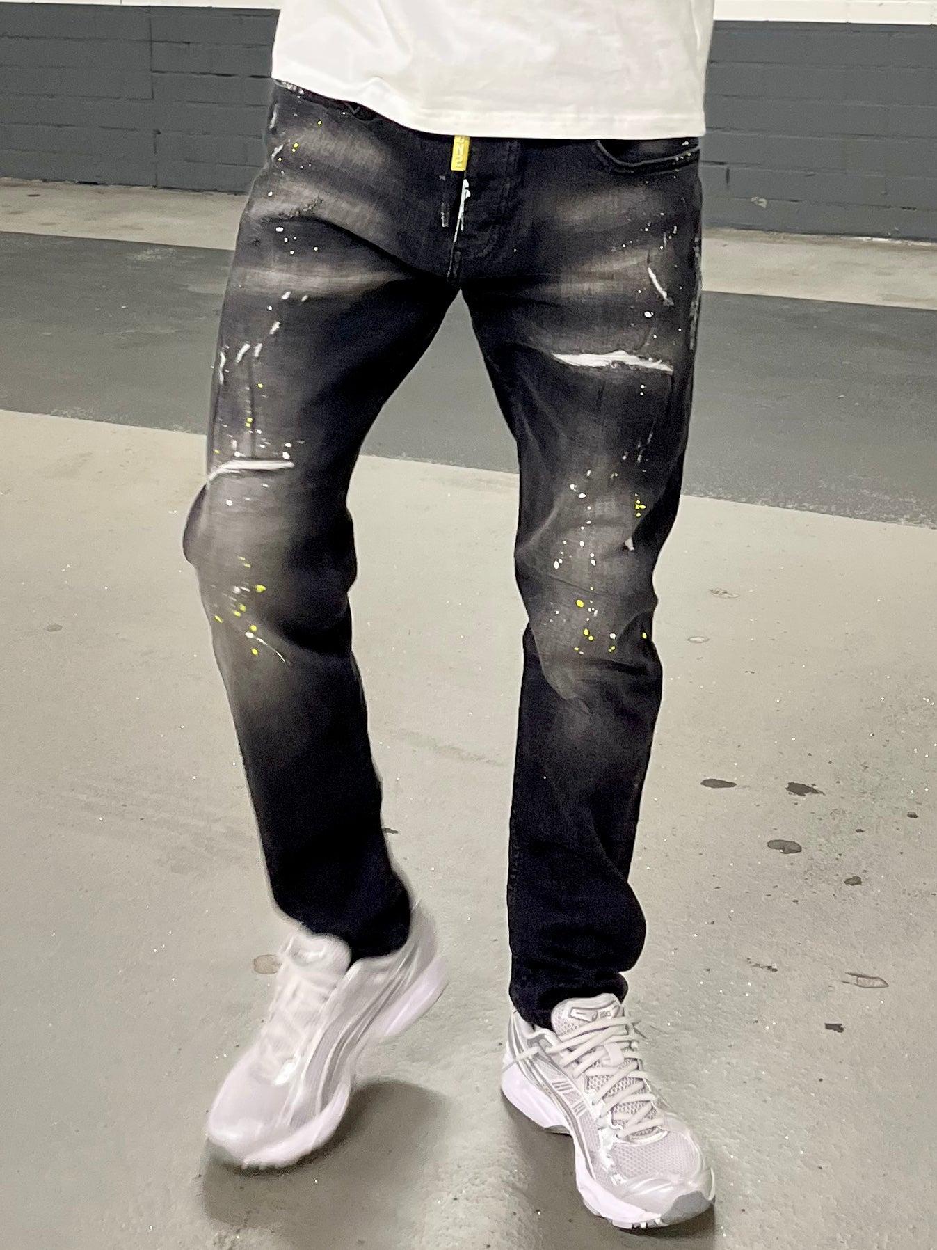 Icon2 zwart/gele slimfit jeans heren
